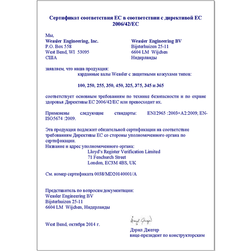 Инструкция по эксплуатации карданных валов и компонентов Weasler